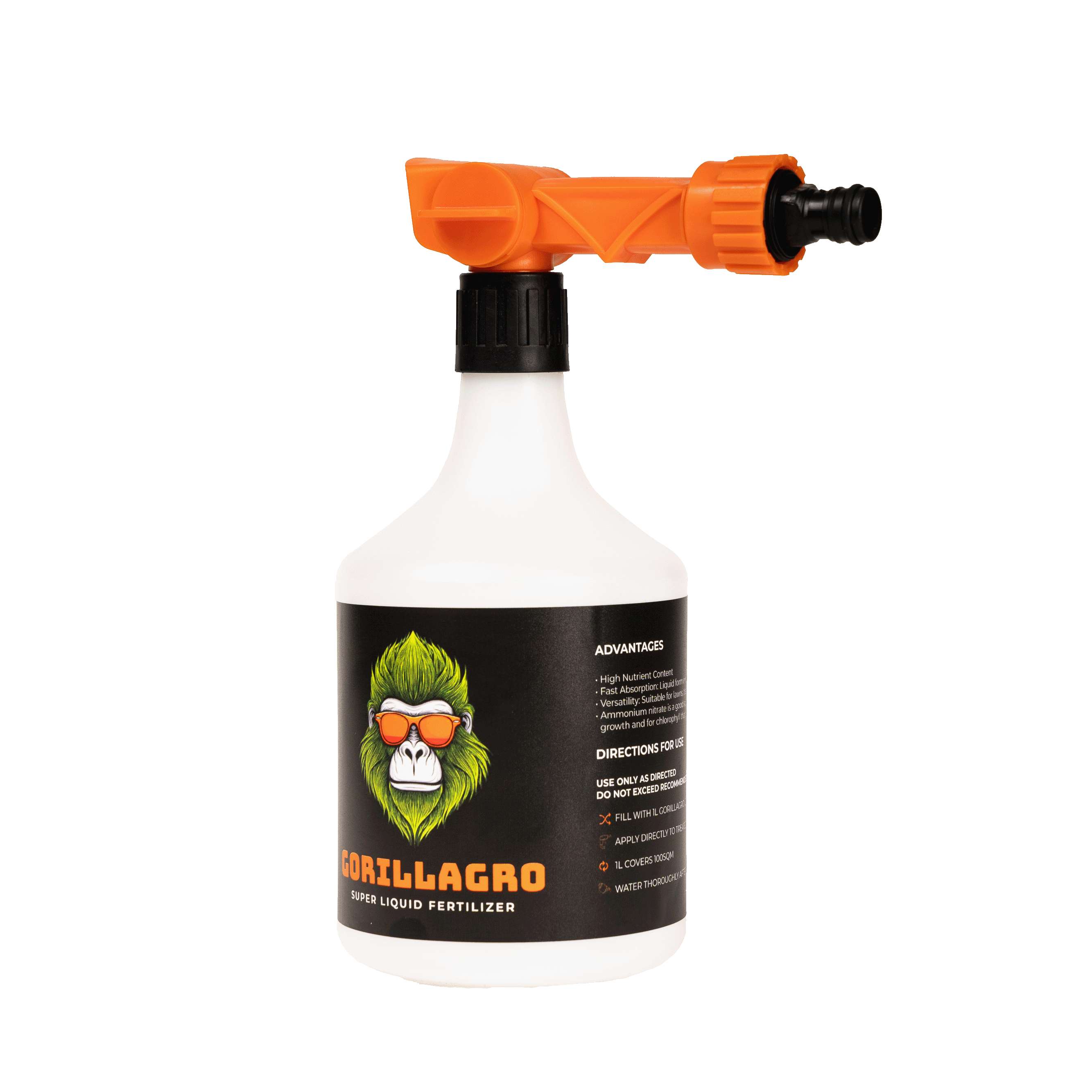 Say goodbye to complicated mixing and messy applications with GorillaGro’s easy-to-use Spray Applicator. Designed for convenience, this innovative tool connects directly to your hosepipe, automatically diluting the fertilizer to the perfect ratio as you water your garden. Whether you’re tending to flower beds, vegetable patches, or your entire lawn, the Spray Applicator ensures even coverage with minimal effort. Just attach, spray, and enjoy the results—your garden has never been easier to nourish!